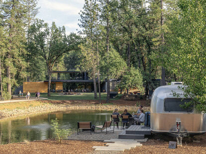 Have you always wanted to sleep in a covered wagon? You can do just that at this property near Yosemite's Big Oak Flat entrance. While you can stay in cabins and retro trailers at Yosemite Pines, the Conestoga wagons are unique and can sleep up to six people. Pan for gold in the property's sluice box or swim in the on-site pool. Bocce ball courts, a sand volleyball court, and a playground make this property particularly family-friendly.