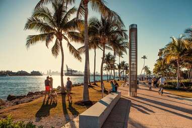 Once a forgotten spoil made of dredgings from the Miami River, Brickell Key is now an exclusive island boasting the Mandarin Oriental and several luxury highrises. Its 1.25-mile walking path runs the perimeter, where views change from the Brickell skyline to the bay, PortMiami, cruise ships, and downtown. Take a pleasant half-hour stroll to work up an appetite for dinner or take a couple of laps around at a faster pace and you’ll get a pretty decent workout.