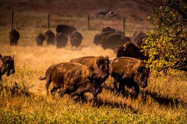 As cool as it was seeing that one bison moping around a paddock at your local zoo, that’s obviously not their natural habitat. Their natural habitat is blocking your car and causing a traffic jam in the middle of nowhere. Also, wandering the prairies of the American West. Visit in September during the governor’s annual Buffalo Round-Up and you can see entire herds rumbling through Custer State Park at terrifying speeds.